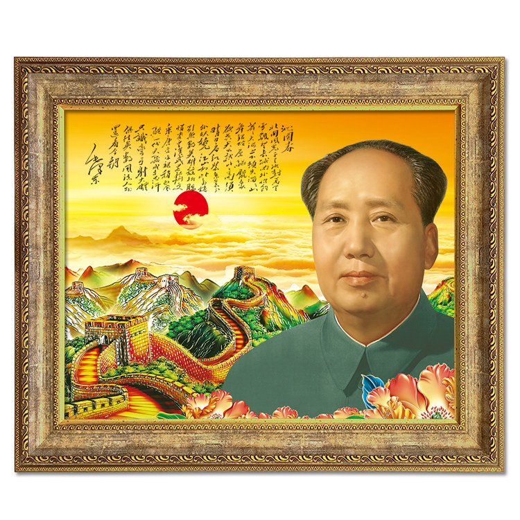 Framed Portrait Chairman Mao Yokkan Qinyuan Poetry Series Oil Canvas Portrait Living Room Decoration Painting of Great People's Hall