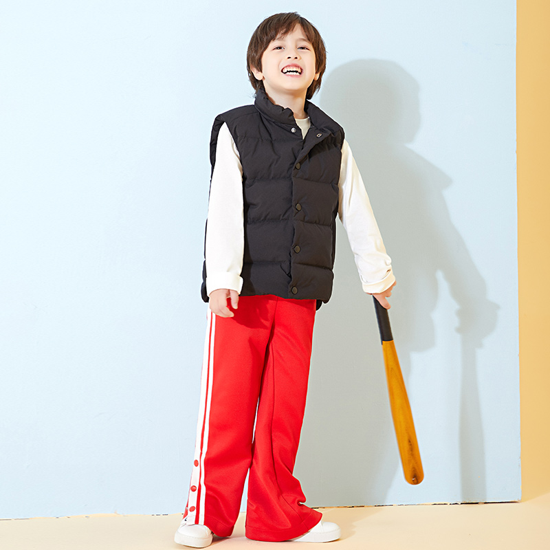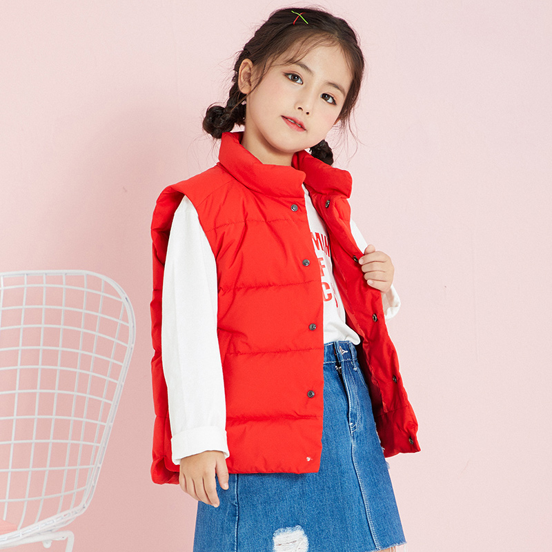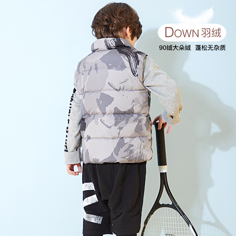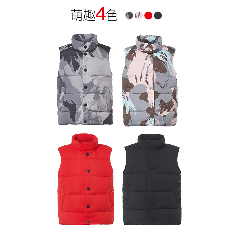 Qianqiangang autumn and winter new children's clothing stand collar solid color down horse clip printing camouflage warm vest 239802