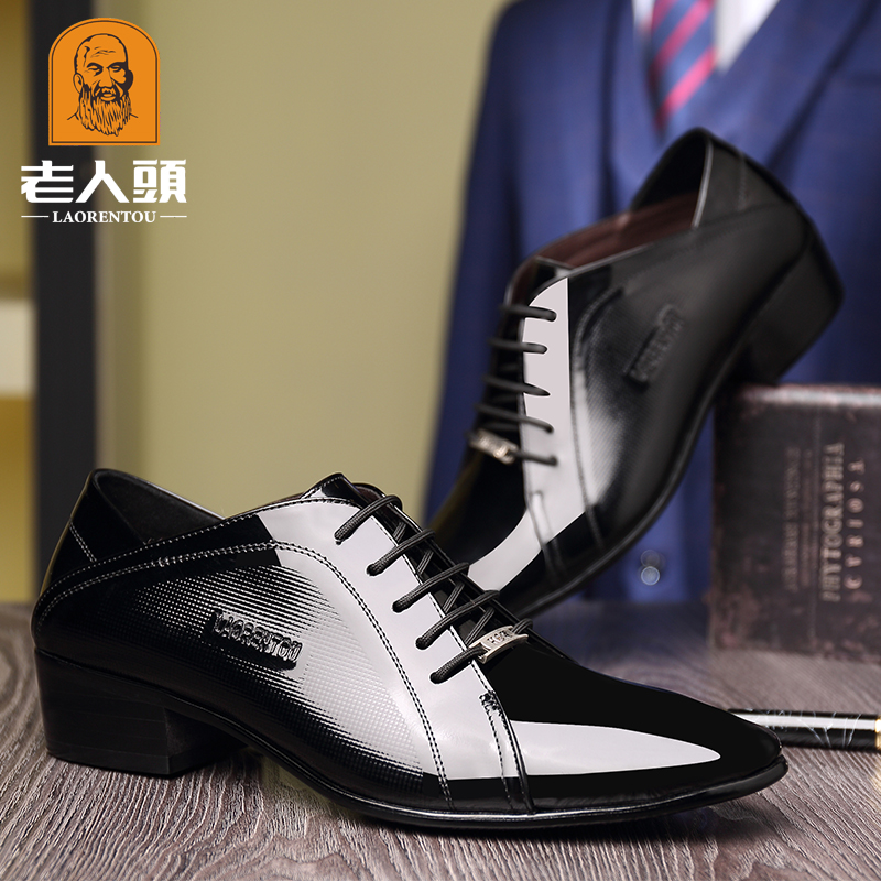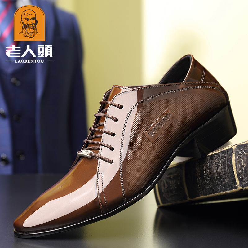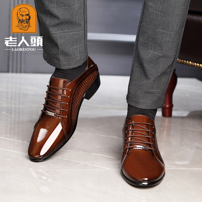 Old man's head summer new leather men's leather shoes hollow breathable leather shoes men's patent leather lace-up pointed Korean wedding shoes