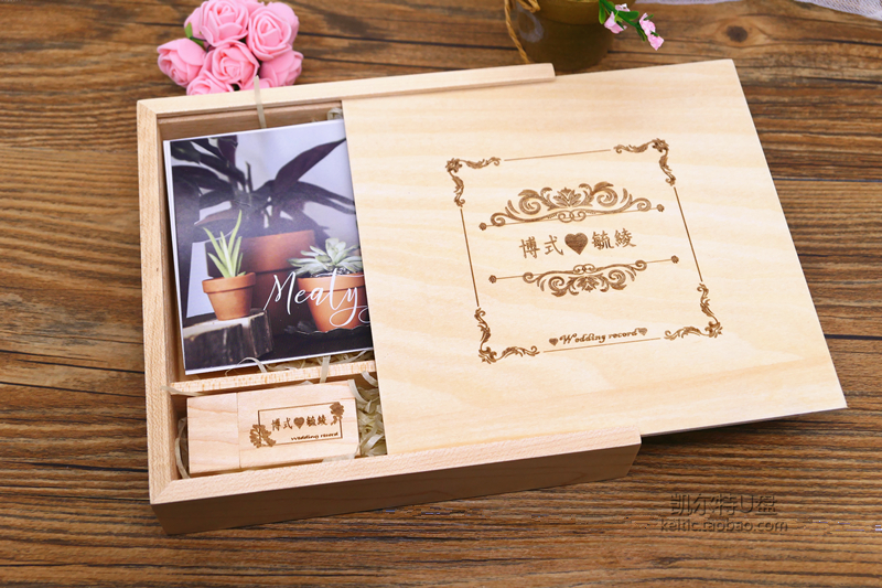 Mobile USB flash memory U disk 16G high speed wooden photo box wooden box gift box personally custom custom drive custom logo