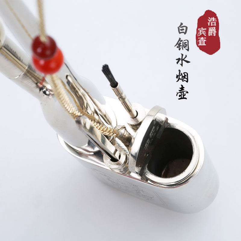 Water smoke pot full set of water smoke pipe water smoke bucket pure copper thickened white copper retro old-fashioned water smoke bag tobacco multi-filter