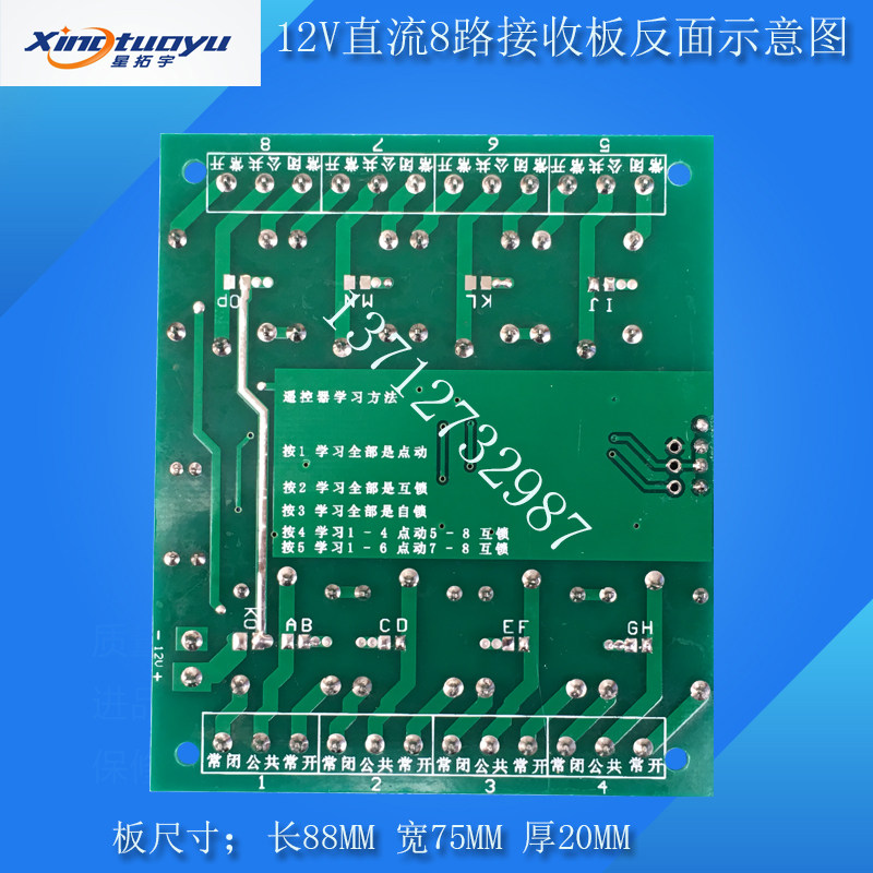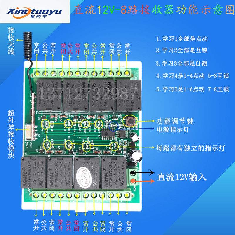 Xing Tuoyu New 12v DC 8-way wireless digital remote control switch jog self-locking interlocking toy remote control switch