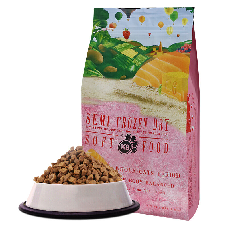 K9-C6 original semi-freeze-dried soft cat food 3 3 pounds full-stage six kinds of fish meat for adult cats and young cats 1 49kg