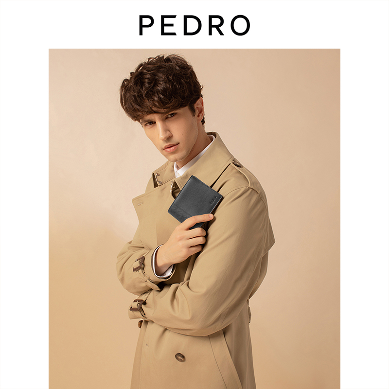 (Tanabata gift)PEDRO calfskin wallet men's solid color multi-card short wallet PM4-15940147