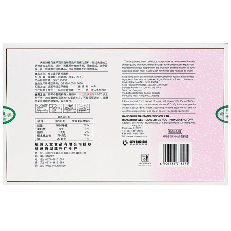 Pure lotus root starch (>50%) white sugar osmanthus (>0 2%) lotus seeds (>1 0%)