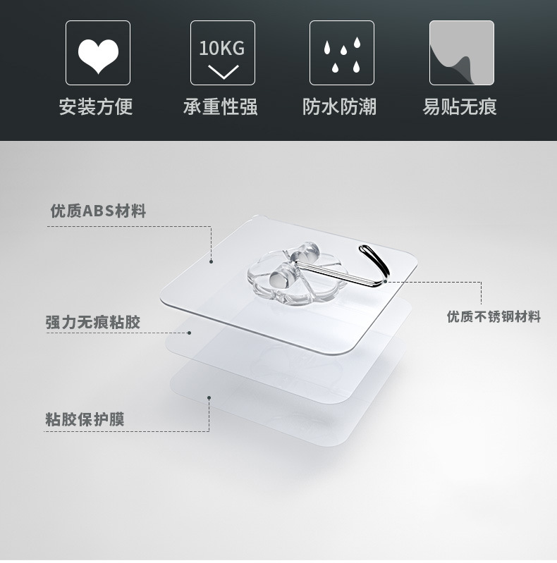 Hook powerful adhesive glued to wall wall-mounted bearing suction cup kitchen hanger with no-punched adhesive door after no-mark adhesive door