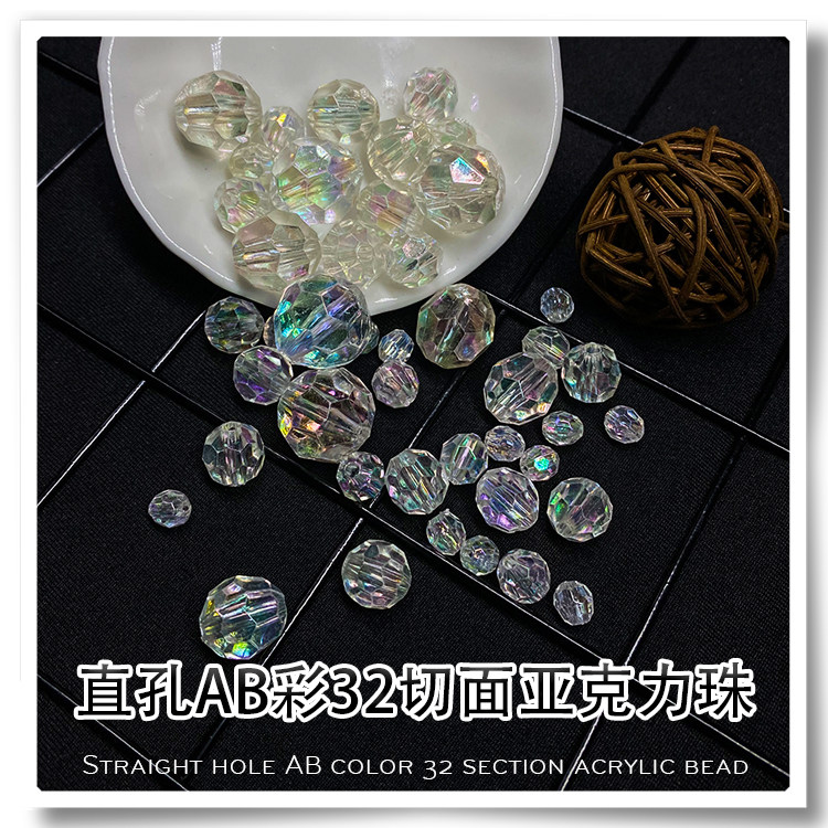 Straight hole 32 faceted beads AB magic color corner beads transparent acrylic beads DIY hand-beaded woven door curtain scattered beads