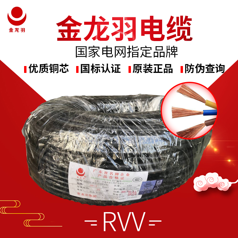 Golden Dragon Plume Wire & Cable National Standard RVV2 Core 3 Core 4 Core * 0 75 1 1 5 2 5 4 6 Squared Jacket Wire