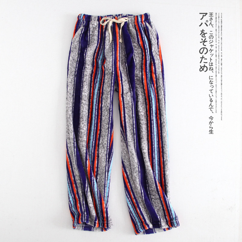 Japanese couple flannel pajamas autumn and winter thickened warm men loose home pants women coral velvet pants large size
