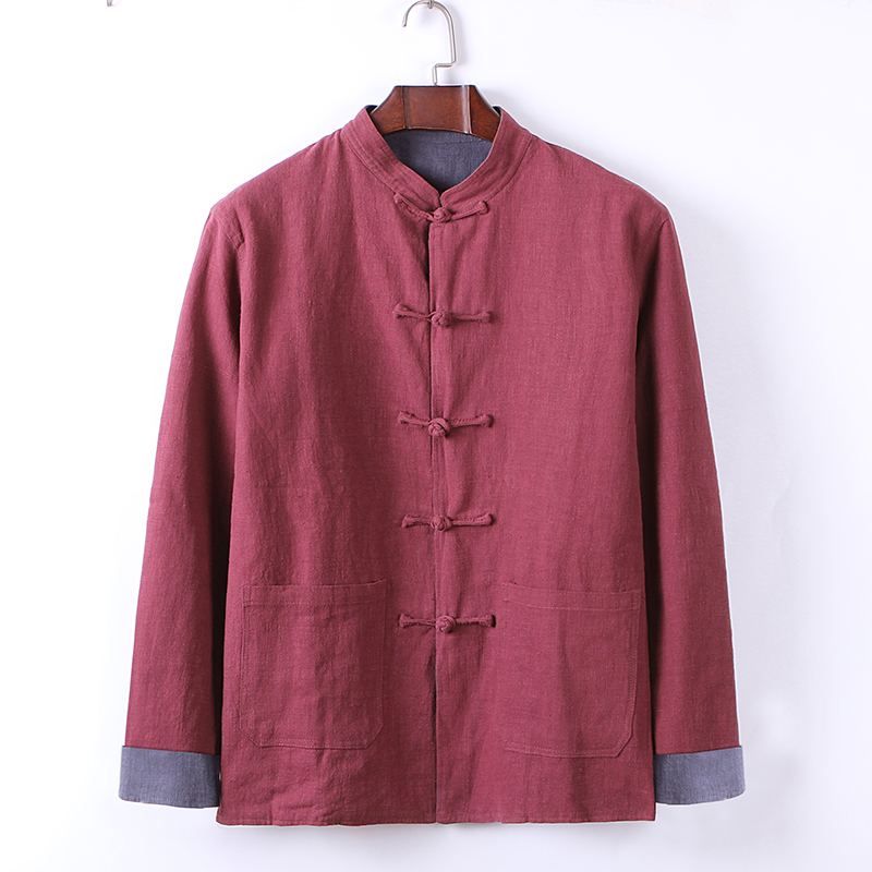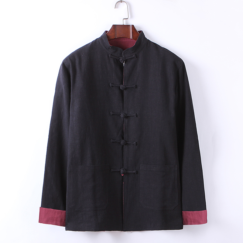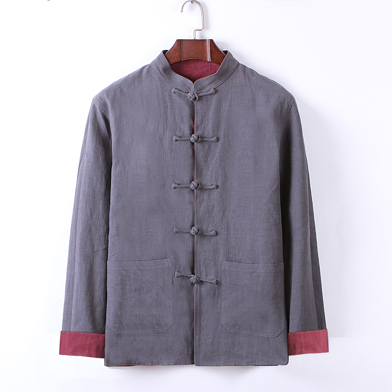 Spring and Autumn Vintage Cotton Linen Stand Collar Jacket Double Sided Chinese Style Men's Linen Long Sleeve Double Sided Tang Suit