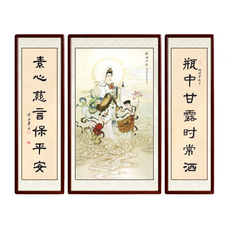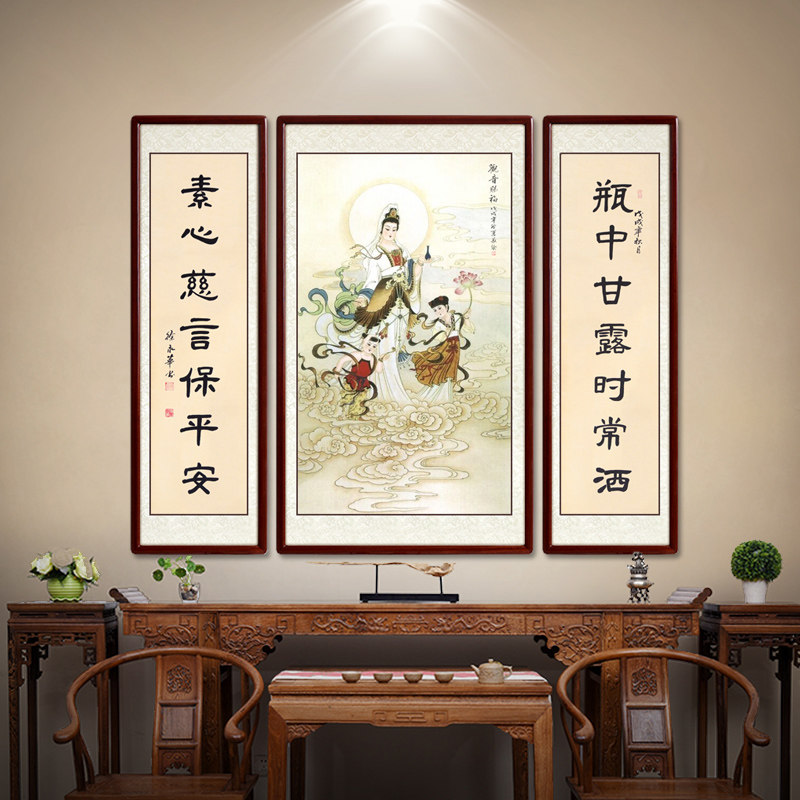Meticulous figures pure hand-painted Chinese painting Guanyin Bodhisattva Buddha Hall rural hall decoration hanging painting Chinese style central hall painting - Taobao