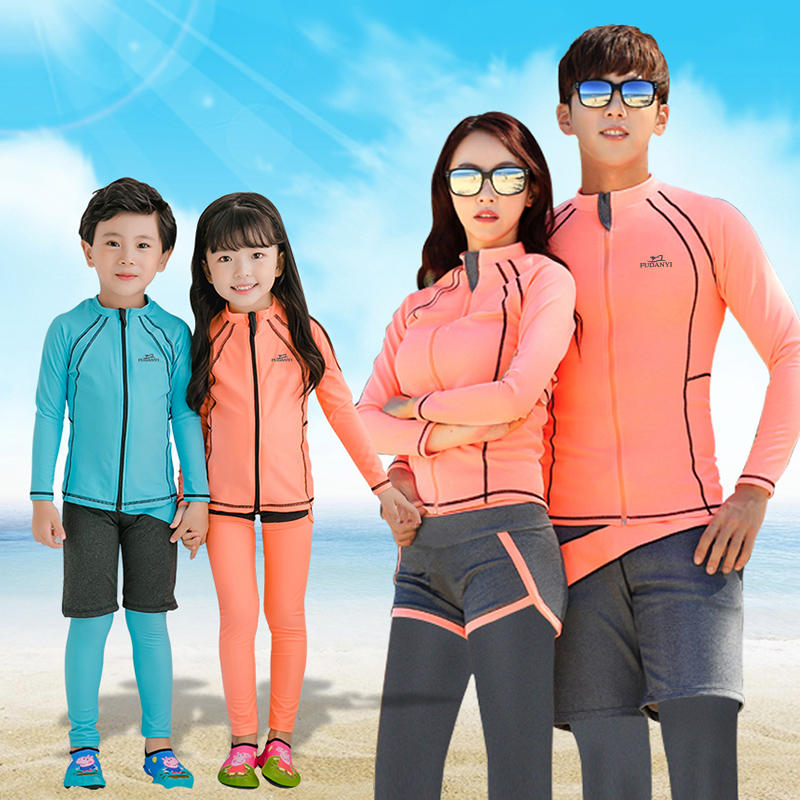 Korean parent-child diving suit lovers long sleeve swimsuit male sunscreen long pants snorkeling suit two-piece style laced jellyfish