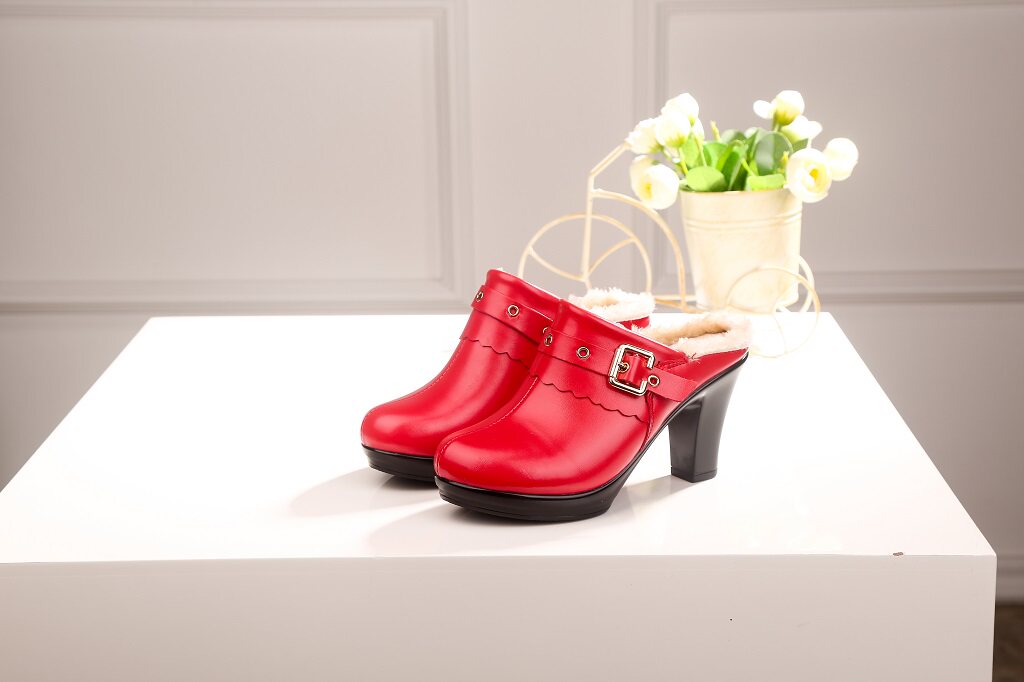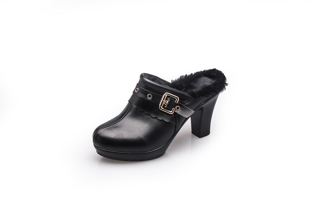 New Fashion Women Slippers Warm Casual Home Try Dressing Room Leather Slippers High Heel Cotton Tug