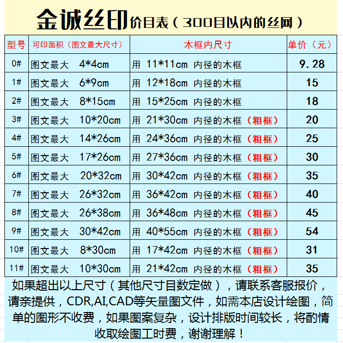 0#内框11* 11cm1#内框12* 18cm2#内框15* 25cm3#内框21* 30cm4#内框24* 36cm5#内框2