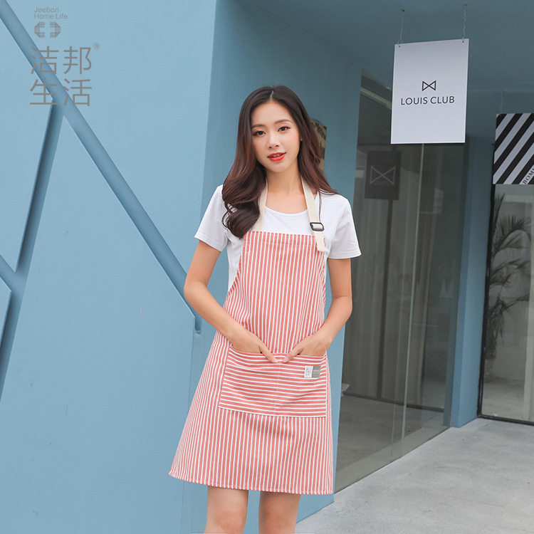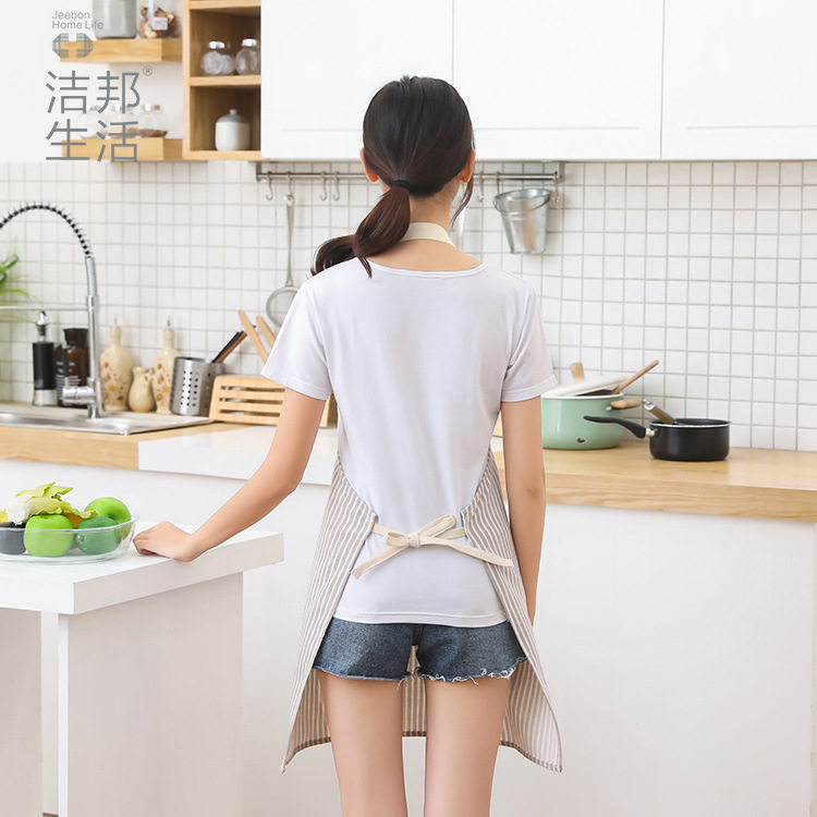 Japanese cotton and linen kitchen anti-oil splicing striped straps cloth art contracted coffee shop work clothes shop clothes art apron