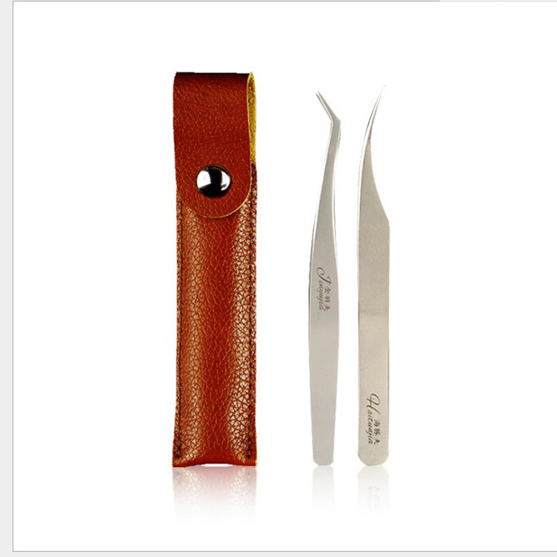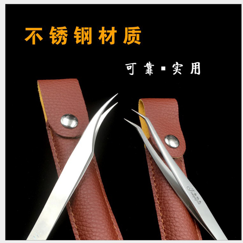 New product with leather packaging tweezers stainless steel clip grafting tweezers beauty grafter special clip pair pack
