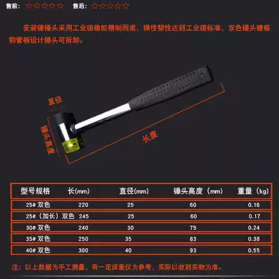 30# Two-color mounting rubber hammer 0 5 Horn hammer