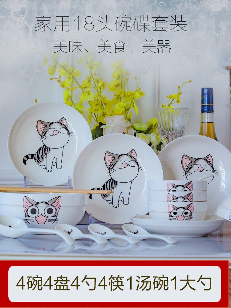 4 bowls 4 dishes 4 tablespoons 4 chopsticks 1 soup bowl 1 tablespoon (cat)