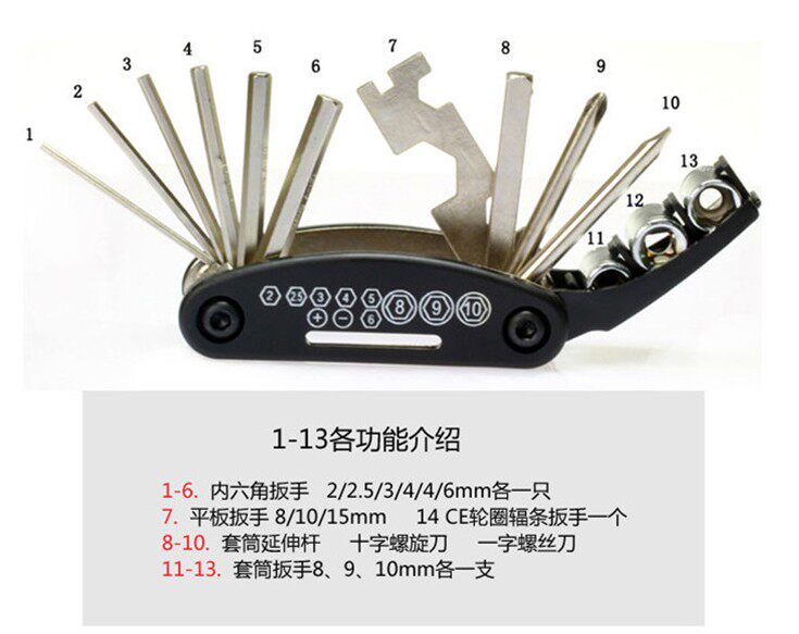 Bicycle repair tools Hexagon screwdriver set Gas cylinder wrench Multi-function repair tools Mountain bike accessories