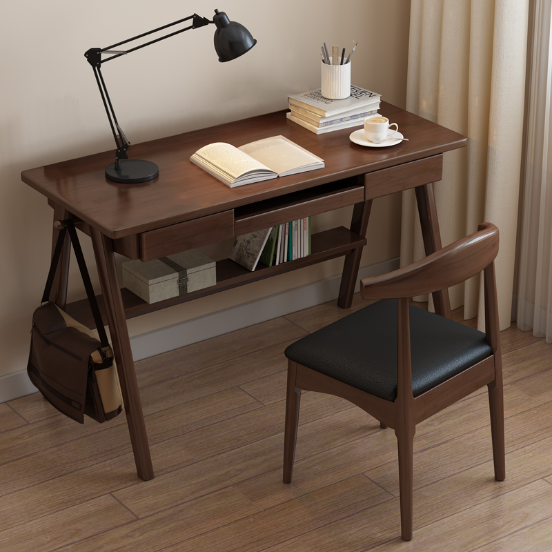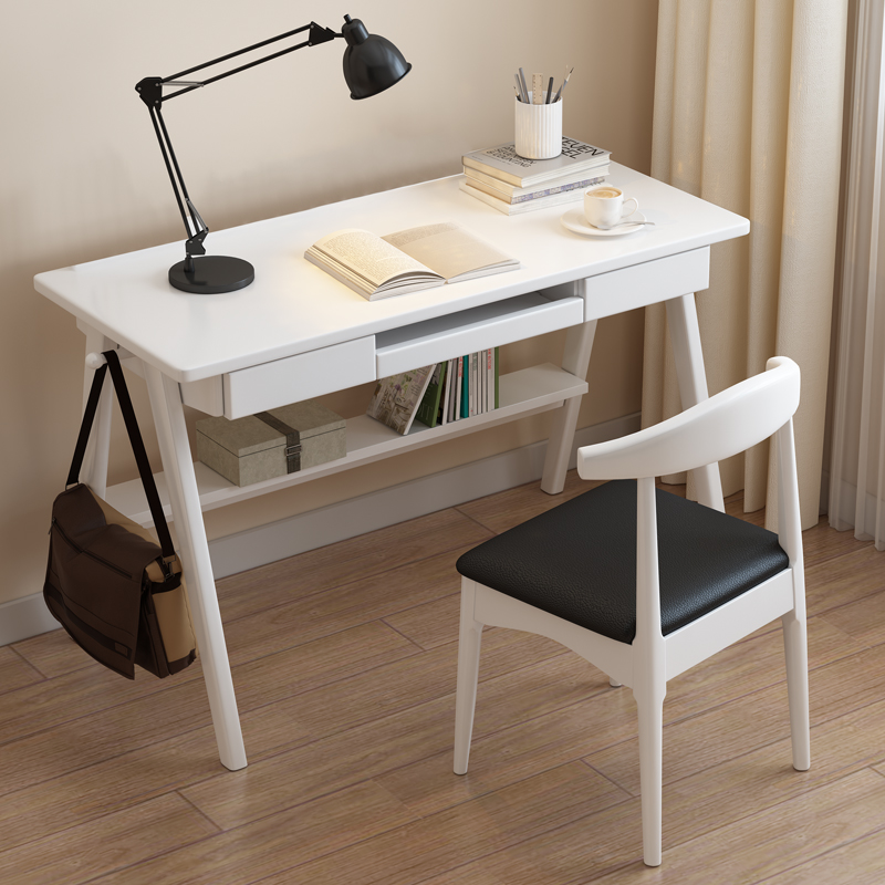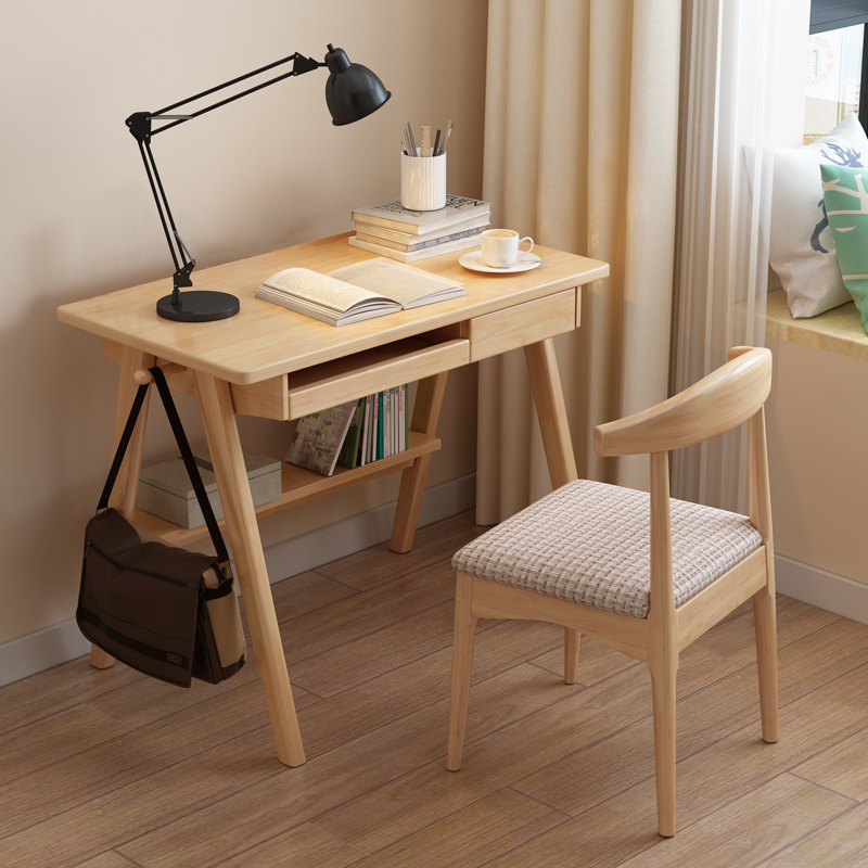 Nordic solid wood desk with keyboard support desktop computer desk home small office bedroom simple student desk