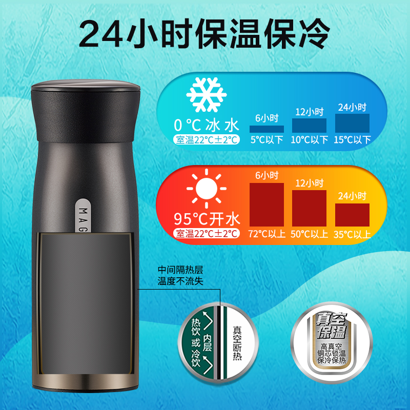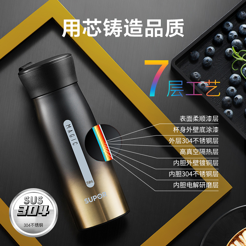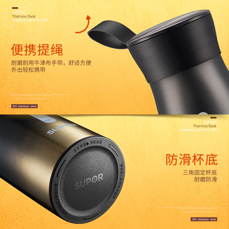 Supor Aurora Vacuum Thermos cup stainless steel male female student fashion slim portable straight Cup business