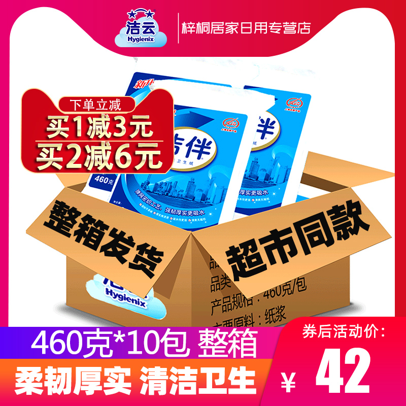 Jieyun Jie Companion toilet paper Flat toilet paper toilet paper square paper 460g10 bags of whole box batch large sheet toilet paper Old-fashioned