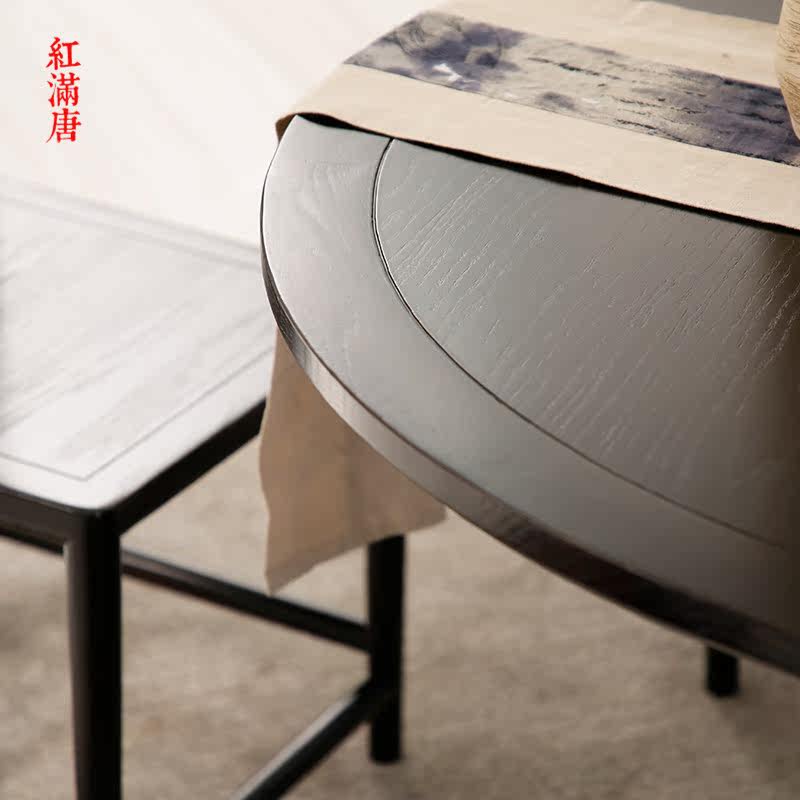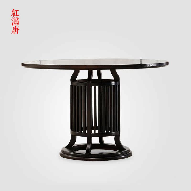 New Chinese-style solid wood dining table and chair combination modern dining room simple round table model room small apartment furniture customization