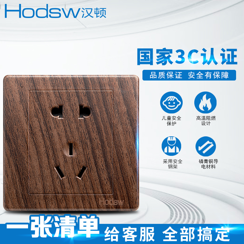 Handon switch socket wood grain color European five-hole socket 235-hole 5-hole socket 86 type home improvement wall retro