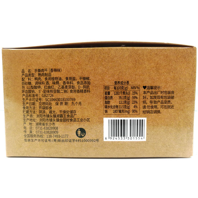Xiangbawang shredded dried meat 12g dried duck meat spicy and spicy spiced pork breast braised cooked food vacuum snack snacks