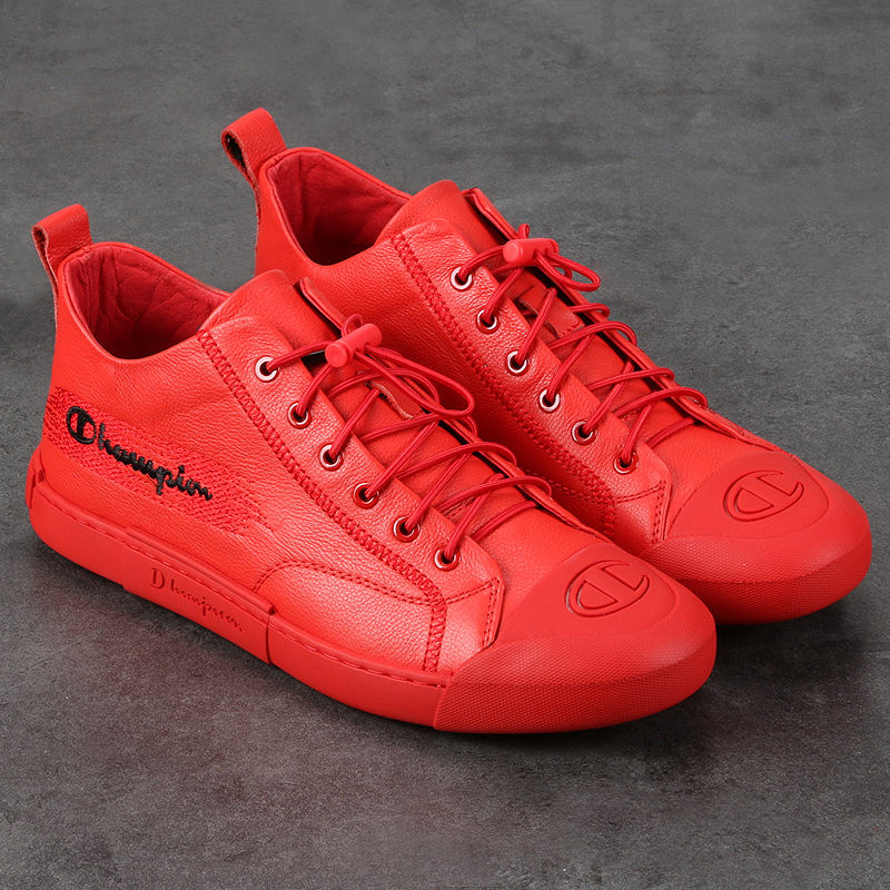 Men's high-top shoes men's leather red mid-high top shoes board shoes British Korean version plus velvet casual trend white shoes