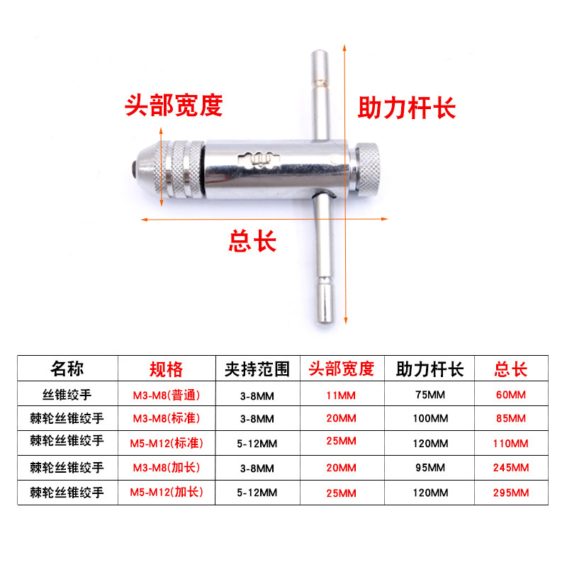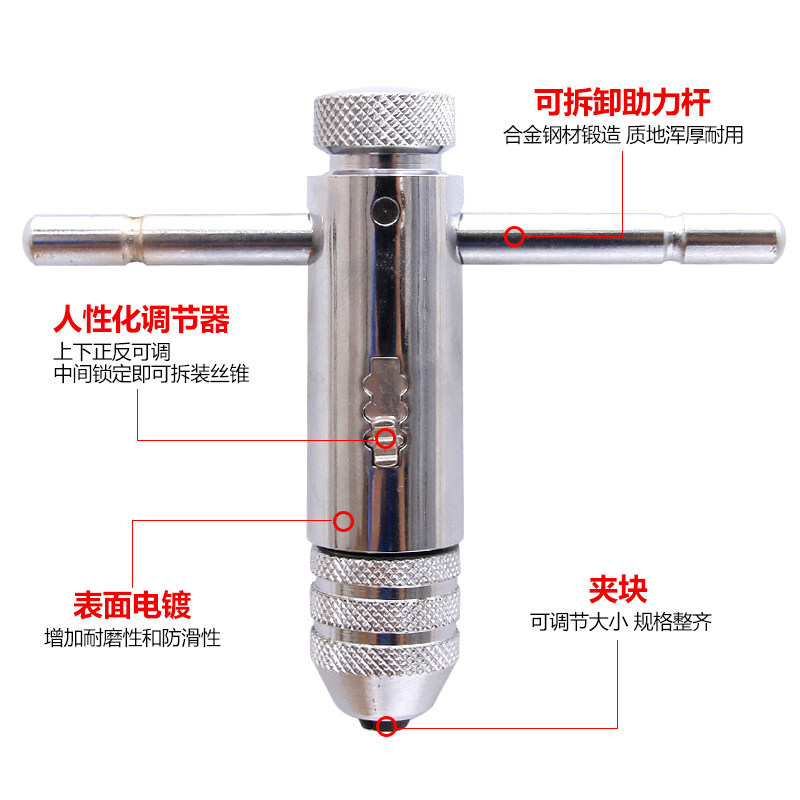 Ratchet screw tapping hand positive and negative adjustable T-shaped extended screw tapping hand tapping manual hand twisting hand tool