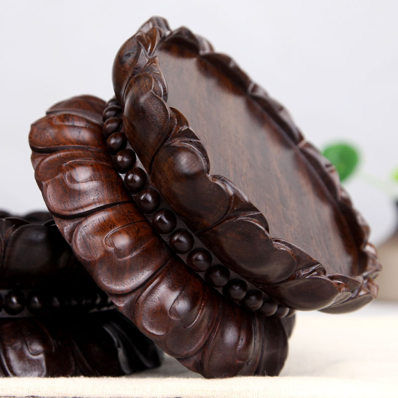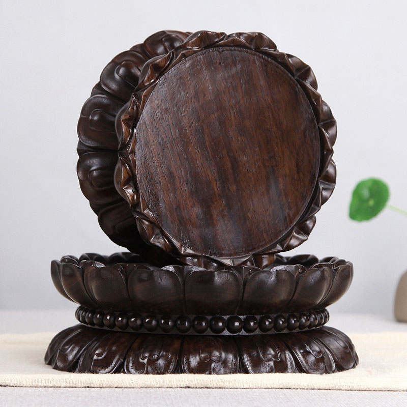 Ebony Buddha statue Guanyin Bodhisattva lotus for worship Buddha solid wood round ornaments strange stone censer base