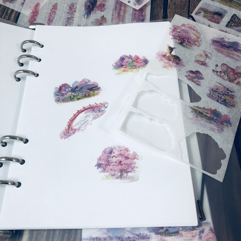 A6 and paper adhesive and paper sticker hand account cartoon transparent bottom and paper stickers have been cut