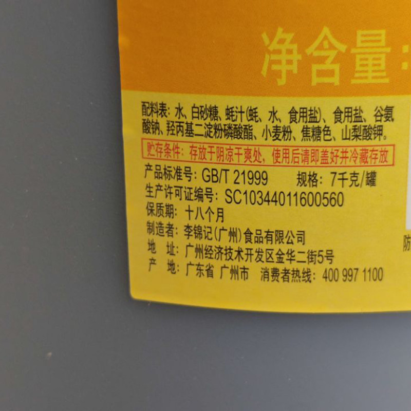 Multi-province Lee Kum Kee Jinzhen mellow oyster sauce 7kg kg stir-fried vegetables, braised, thickened, dipped in food and cooking