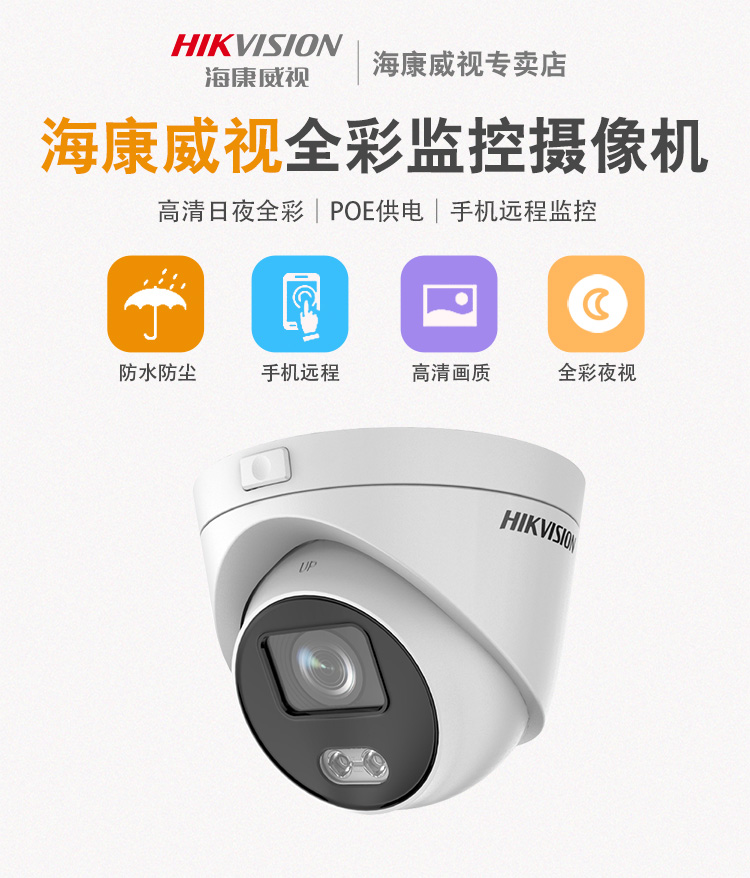 Hikvision 4 million full-color camera poe monitoring dome power supply indoor wide-angle 2CD3347WD-L