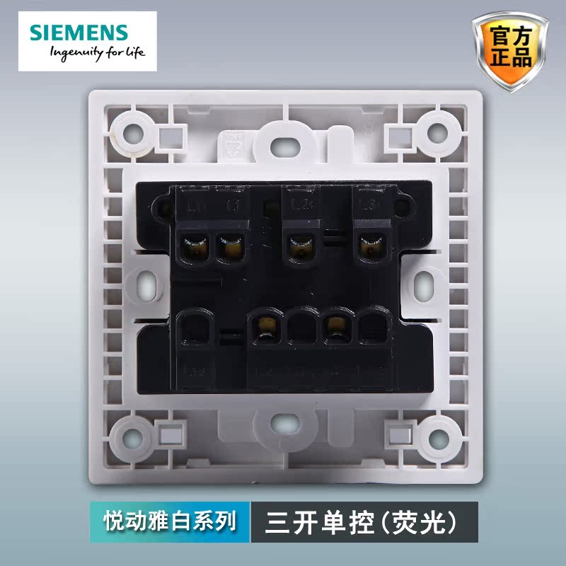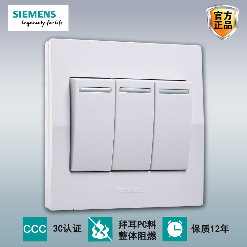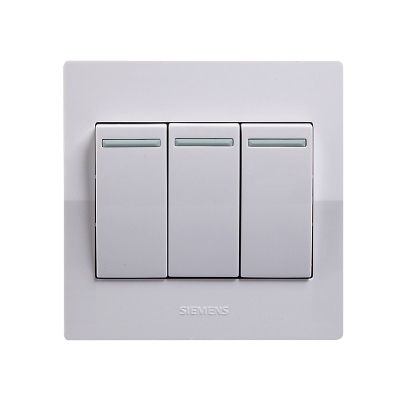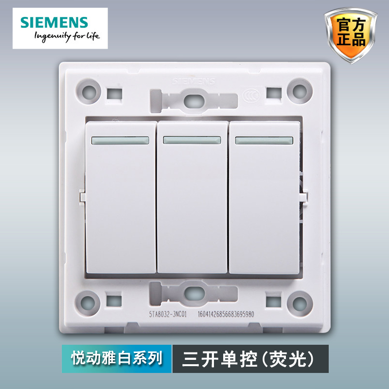 Siemens three-open single-control fluorescent switch panel Yuedong Yabai 86 type household electric lamp triple single-control with night light