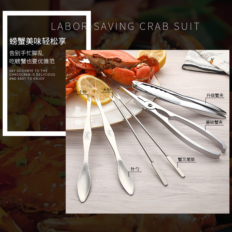 Crab eating tools Household crab removal eight pieces Hairy crab peeling crab artifact Crab clip Cut crab clamp crab needle seafood set