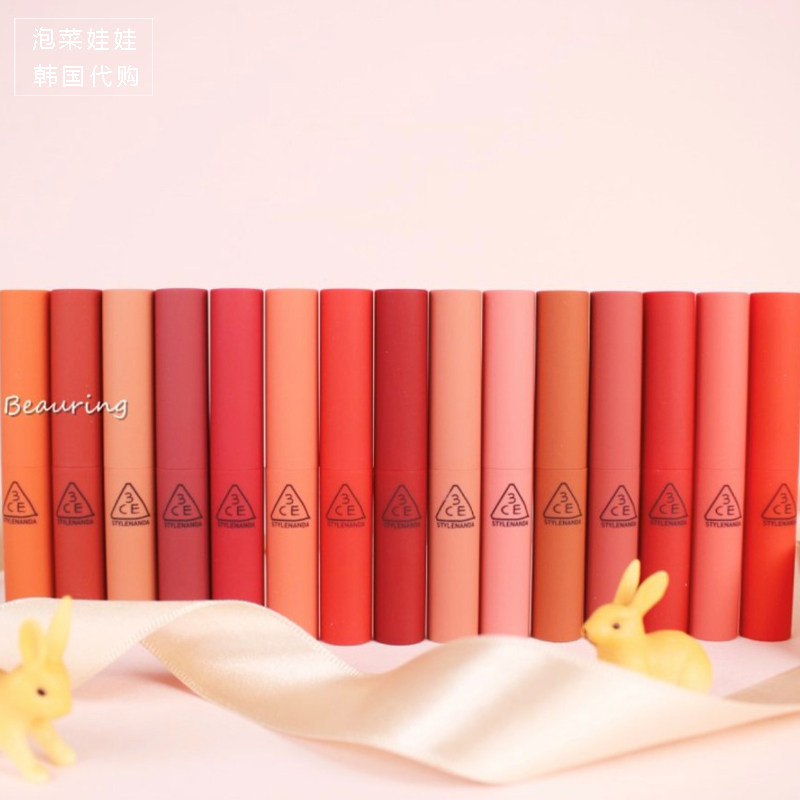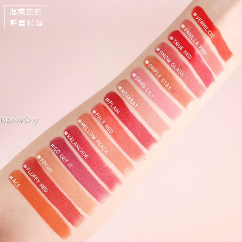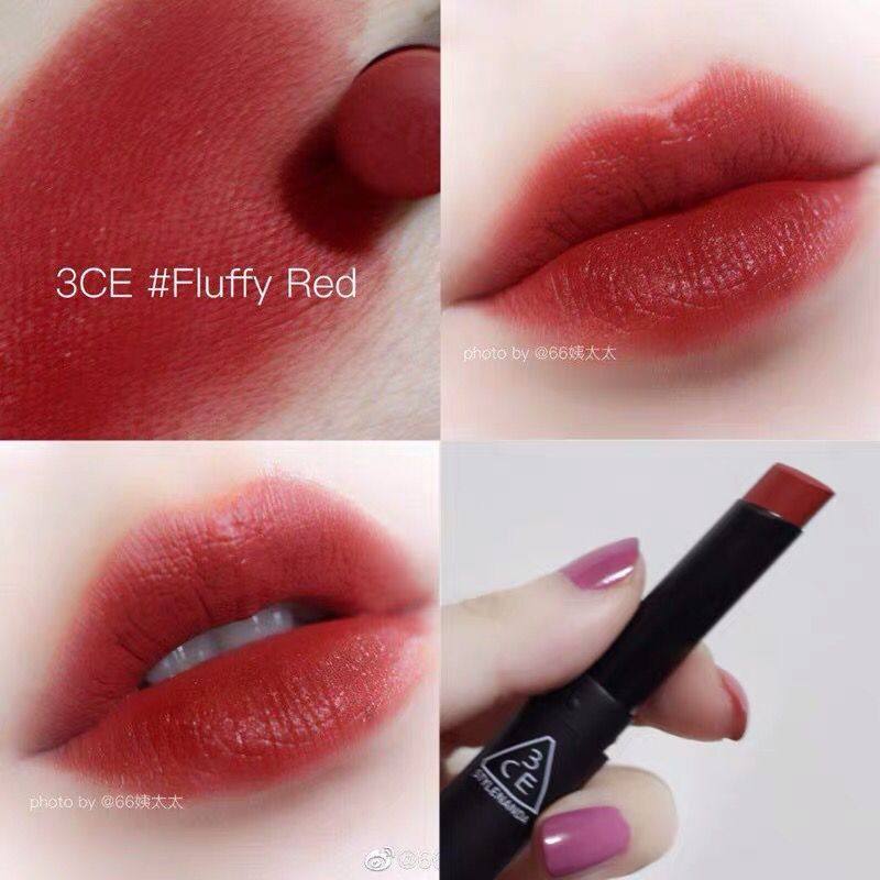 3CE Red Slim Tube Lipstick Lipstick PLAIN FLUFFY RED SIMPLE STAY SNOW GLASS