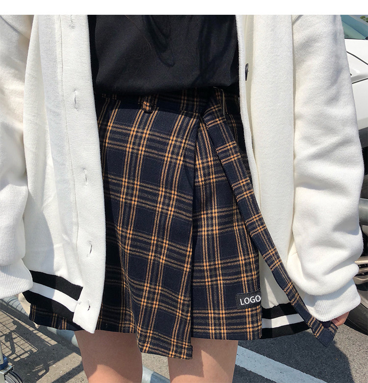 Original Jiu Mezi Real beat Han Wind ulzzang College cute 100 lap high waist irregular checkered half body pants skirt woman