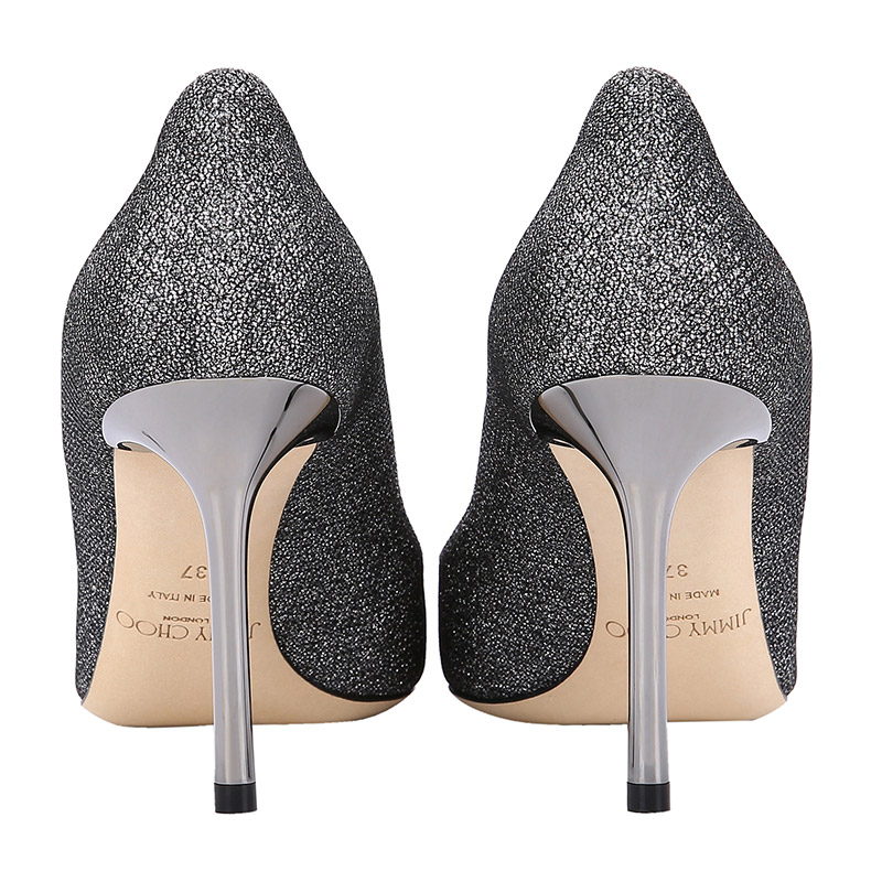 Jimmy Choo Zhou Yangjie ROMY8 5cm carbon gray fine silver pointed high heels fashion shoes women's wedding shoes