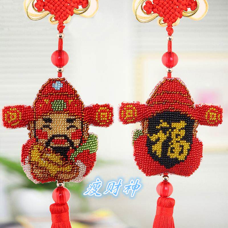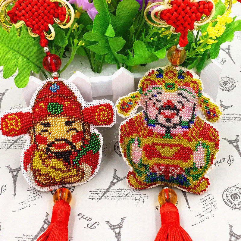 God of Wealth Little Caizhu Beads in the Car Bead Embroidery Cross Stitch Car Pendant 2022 New Self Ping An Fu