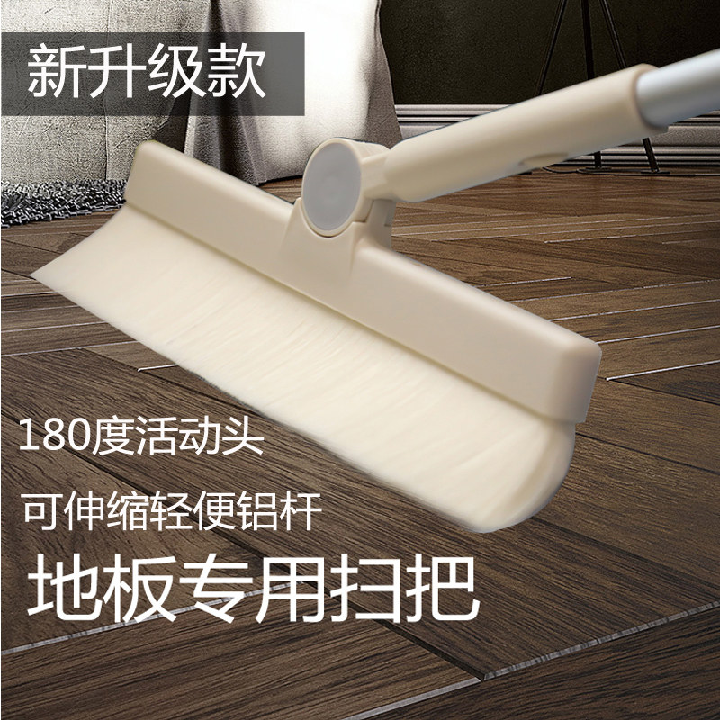 D-New upgrade broom) Aluminum rod) Retractable rod 180°rotating head(beige)