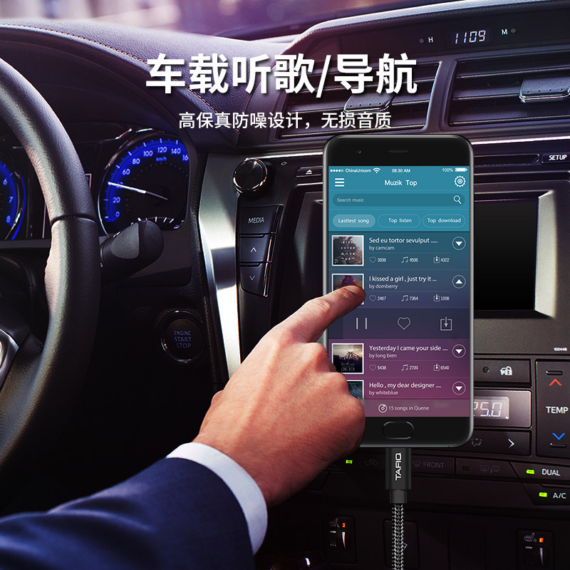 type-c turn 3 5mm on-board aux dual head audio line Leview car sound connection line Android applicable listening song line control Huawei p20 Leview mix2 Xiaomi mobile phone switching car speaker