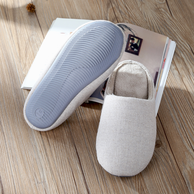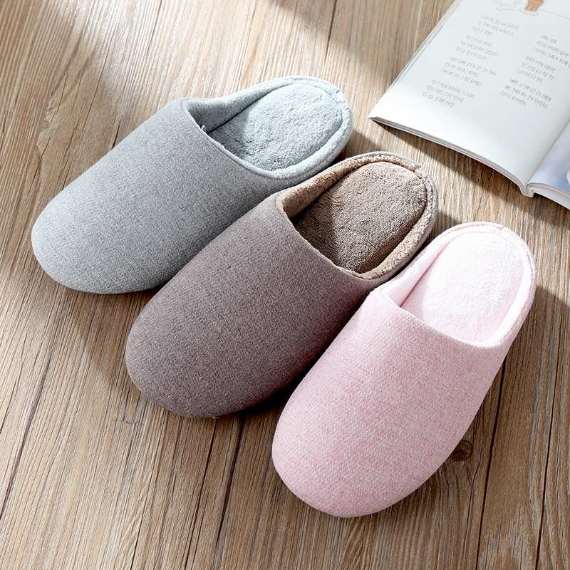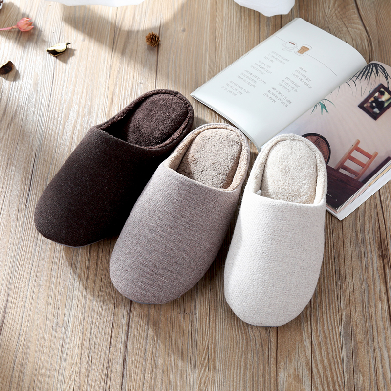 Love Home Preferred Japanese-style solid color autumn and winter wool indoor home shoes comfortable soft bottom couple cotton slippers