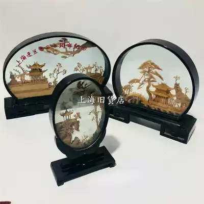 80s old wood carving, Crane landscape, pavilion, lifelike desk decoration collection