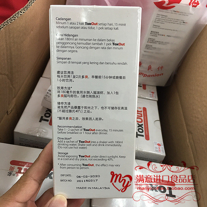 Malaysia original Toxout dietary fiber fruit and vegetable powder meal replacement powder 15 packs with cup