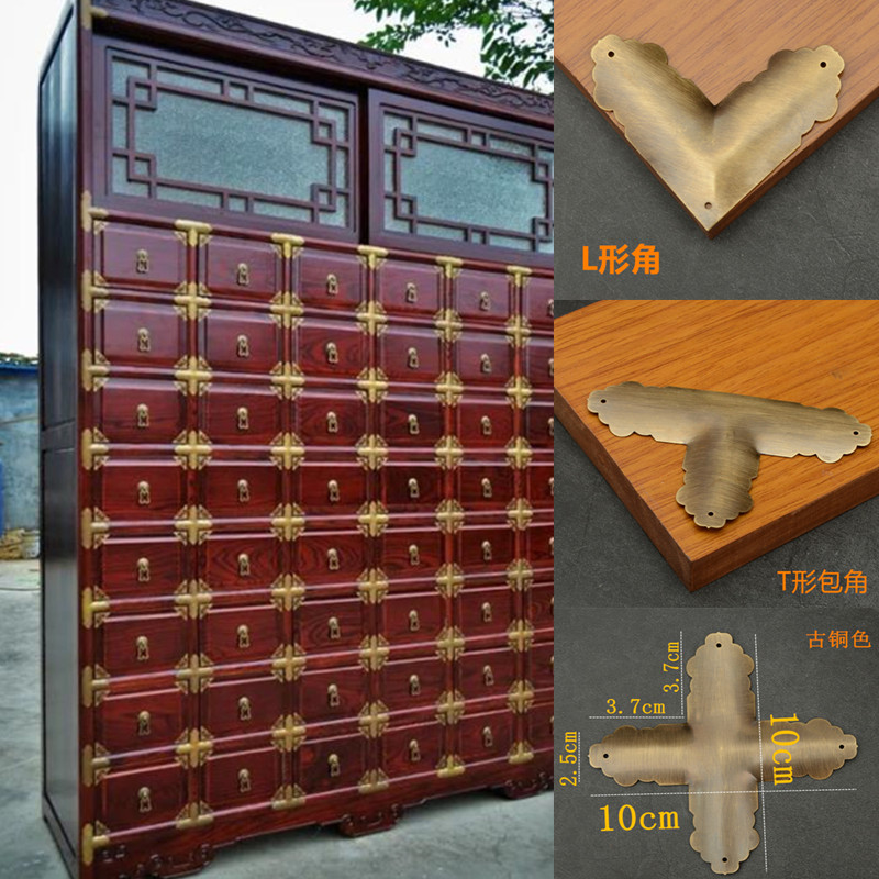 L angle T corner Cross corner Chinese antique pure copper Chinese medicine cabinet corner handle decoration piece corner flower corner corner piece cabinet door decoration
