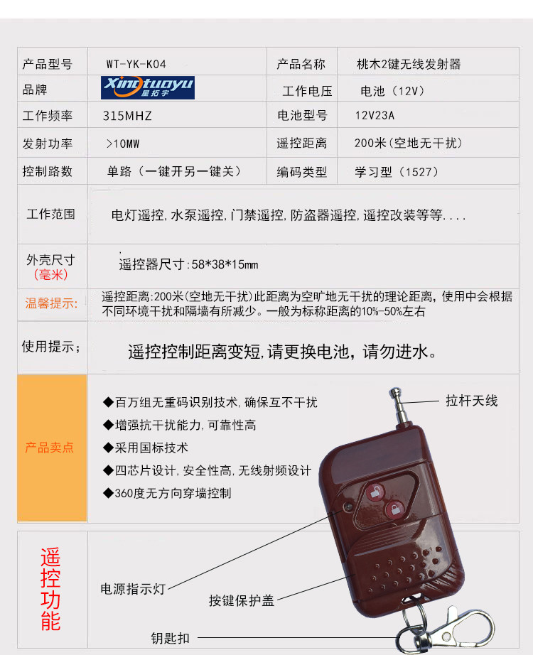Starturou Peach Wood 2 Key Remote Control Wireless Remote Control Switch Electric Gate Remote Control Water Pump Luminaire Remote-Taobao