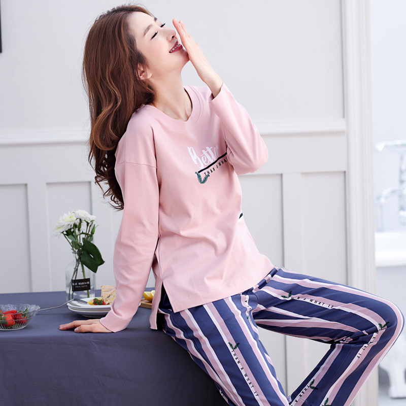 Sleepwear Woman Fall Long Sleeve Casual Cartoon Pure Cotton Routine Suit Spring Winter Korean Version Sweet And Great Size Lady's Home Clothes