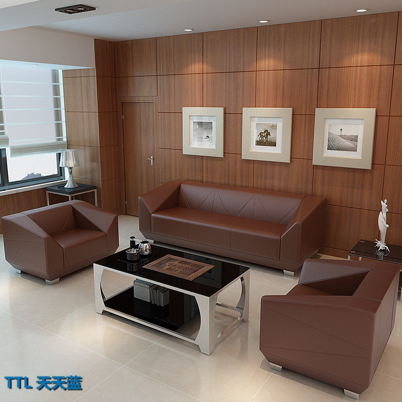 Hangzhou simple modern office sofa three-person reception meeting business area reception leather sofa factory direct sales